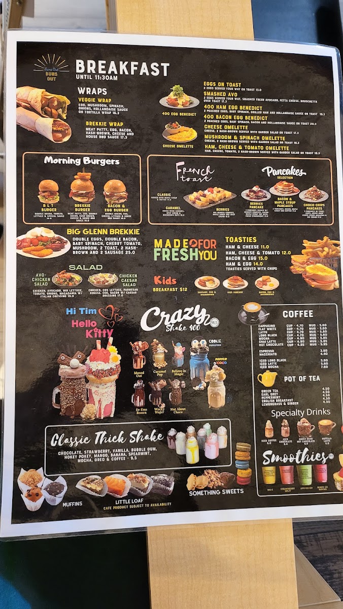 Your visit wouldn’t be complete without indulging in their tantalizing shakes and smoothies, such as the rich Classic Shake priced at A$12.95. For a sweet finish, explore their cafe display with treats like American Brownies and Monster Cookies.